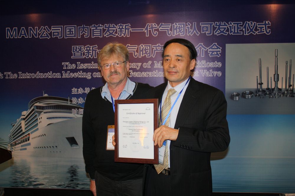 上海高斯通船舶配件有限公司正式获得了MAN公司颁发的新一代气阀合格生产供应商的认证,这是目前国内第一家也是唯一一家获此认可的企业,也是国内柴油机领域仅有的由发明专利转化为产品并通过国外权威厂商认证的公司。这一认证标志着高斯通公司自主研发的新一代气阀已达到国际领先水平,能够完全替代进口产品。